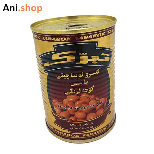 کنسرو لوبیا چیتی تبرک 380 گرمی کد 340