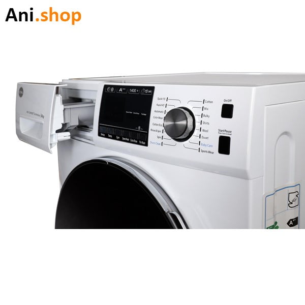 ظرفیت دیگ: 8 کیلوگرم رتبه انرژی: +++A قابلیت اضافه کردن لباس حین کار: دارد بخارشو: ندارد سرعت چرخش موتور: 1400 دور در دقیقه صفحه نمایش: بله قفل کودک: دارد جهت بازشدن در: به سمت چپ صرفه‌جویی (ECO) ، لباس بچه (Baby Care) ، لباس مشکی ، شست‌وشوی سریع