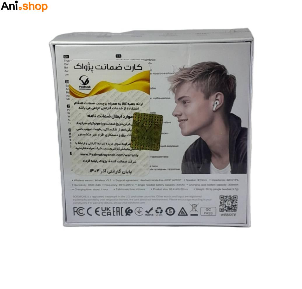نوع اتصال: بیسیم · نسخه بلوتوث: 5.3 · ابعاد :22*45*60.4 میلی متر وزن: 45 گرم ظرفیت باتری کیس: 400 میلیآمپر ساعت ظرفیت باتری ایرپاد: 35 میلیآمپر وزن خالص : 58.5 گرم ASP-3-11-1380