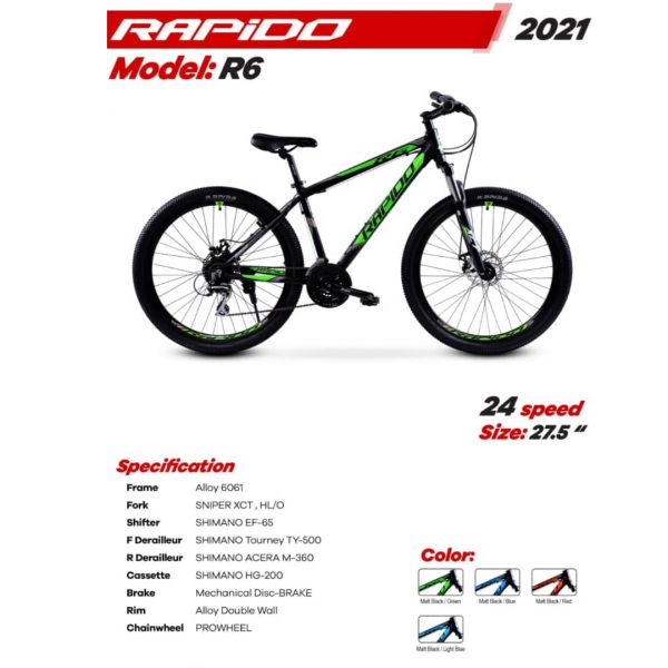 دوچرخه راپیدو 2021 مدل R6 سایز 27.5 ( شیمانو اصلی )