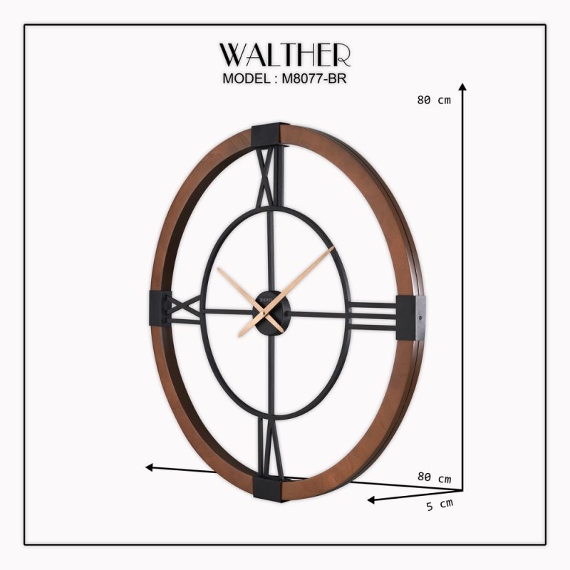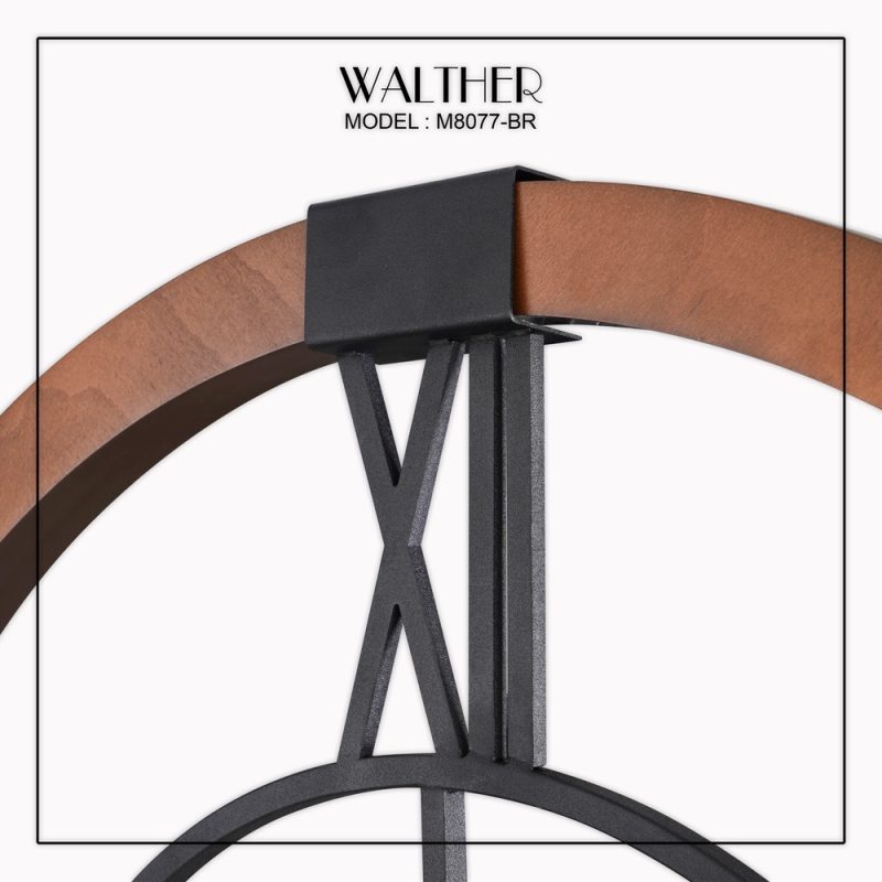 این ساعت دیواری با طراحی بسیار زیبا و مینیمال برای شما موجود شده است. همچنین باید این نکته را بیان کنیم که این ساعت در چهار رنگ یعنی قهوه ای تیره و روشن و رنگ کرم و خاکستری برای شما موجود شده است. در این بخش برای شما رنگ قهوه ای تیره را در دسترس قرار داده ایم. همچنین رنگ کرم این مدل هم از قسمت ساعت دیواری والتر 8071 رنگ کرم در دسترس است. اعداد رومی که به زیبایی طراحی شده است به همراه رگه های طبیعی چوب روی بدنه، این محصول را به یک ساعت دیواری مدرن تبدیل کرده است. سایز 80 این ساعت، باعث می‌شود که در فضاهای گسترده، این ساعت به مهمترین اکسسوری محیط تبدیل شود.